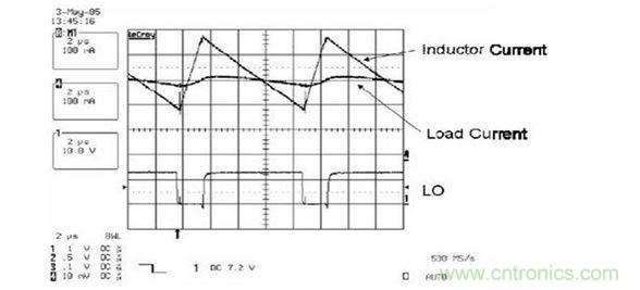 下圖說(shuō)明了電感減小時(shí),在輸出電壓的變化范圍內(nèi),負(fù)載電流的波動(dòng)明顯增大。