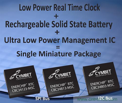 【導(dǎo)讀】Cymbet公司今日宣布:其EnerChip™ RTC系列產(chǎn)品正式發(fā)布商用,該產(chǎn)品將一顆超低功耗實時時鐘與可充電固態(tài)電池以及電源管理集成電路(PMIC)集成在一個5mm x 5mm的塑料封裝之內(nèi),是世界上最小的、帶有內(nèi)置電源保持的RTC。