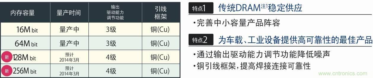 高可靠性DRAM系列產品陣容新增128M/256M bit SDRAM功能