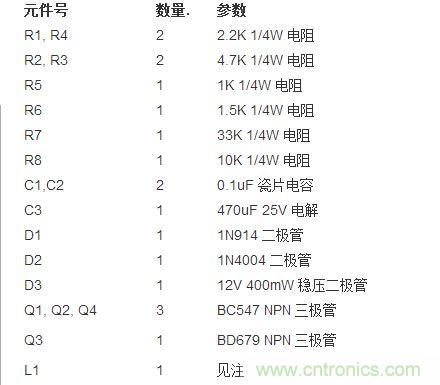 這個逆變電路可以提供高達800mA 12V電源。該電路簡單,效率約為75%。通過改變只是一些組件,還可以修改不同的電壓。該電路也適用摩托車音響等。