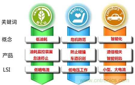 第一個關鍵詞是 "環保" (eco)。這在HV(混合動力汽車)、EV(電動汽車)向普通車輛的普及過程中作用顯著。另外,各汽車制造商之間的低油耗化競爭也日益激化。這些突破是由復雜且周密的電子化控制來實現的,當然隨著HV、EV的普及和油耗性能的提升,所搭載的電子設備還會繼續增加。