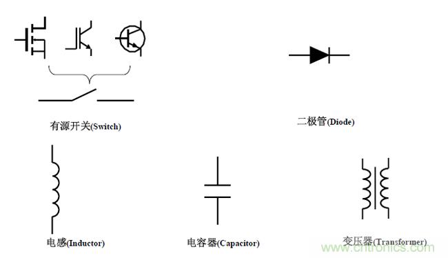 開(kāi)關(guān)電源功率電路的五個(gè)基本元件:開(kāi)關(guān),二極管,電容,電感,變壓器