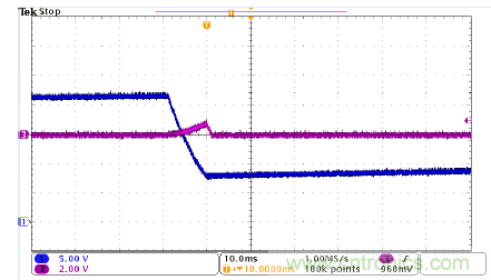 圖5、圖6和圖7是比較性實驗。CH1是VDD電壓,CH3是輸出電壓。