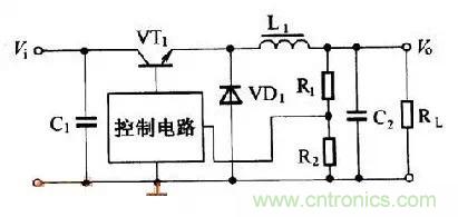DC-DC就是直流-直流變換,一般有升壓(BOOST)、降壓(BUCK型)兩種。降壓式DC/DC變換器的輸出電流較大,多為數(shù)百毫安至幾安,因此適用于輸出電流較大的場(chǎng)合。降壓式DC/DC變換器基本工作原理電路如下圖所示。VT1為開關(guān)管,當(dāng)VT1導(dǎo)通時(shí),輸入電壓Vi通過電感L1向負(fù)載RL供電,與此同時(shí)也向電容C2充電。在這個(gè)過程中,電容C2及電感L1中儲(chǔ)存能量。當(dāng)VT1截止時(shí),由儲(chǔ)存在電感L1中的能量繼續(xù)向RL供電,當(dāng)輸出電壓要下降時(shí),電容C2中的能量也向RL放電,維持輸出電壓不變。二極管VD1為續(xù)流二極管,以便構(gòu)成電路回路。輸出的電壓Vo經(jīng)R1和R2組成的分壓器分壓,把輸出電壓的信號(hào)反饋至控制電路,由控制電路來控制開關(guān)管的導(dǎo)通及截止時(shí)間,使輸出電壓保持不變。