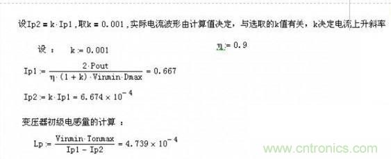 K值就是上面說的電流連續比上面計算書定義的Ip2是電流上升前沿Ip1是電流上升后沿。所以當K=0的時候變壓器是工作在臨界模式以下的為防止計算出錯一般習慣取0.001.