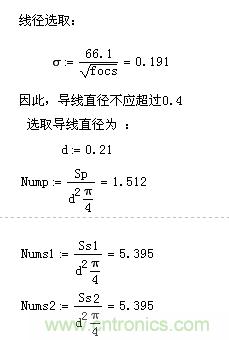 對于一定的電流,需要的導線截面積是一定的,在實際選取線徑的時候,要結合實際所選的骨架幾何尺寸,做合適的組合,盡量不要散繞,對于某一層繞組,單根線太散的話,可以選取兩根或者幾根細線進行并饒,只要繞組的總截面積在計算值左右就好。