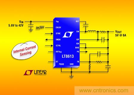 【導讀】近日,凌力爾特公司宣布推出同步降壓型開關穩壓器 LT8613,該器件集成了電流檢測功能。同步整流提供高達 95% 的效率,而突發模式 (Burst Mode®) 工作可保持靜態電流在無負載備用情況下低于 3µA。其 3.4V 至 42V 輸入電壓范圍使該器件非常適合汽車及工業應用。