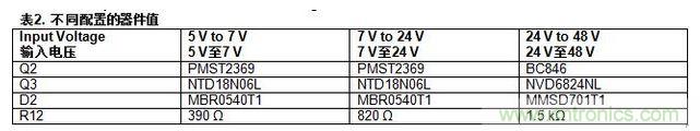 表2總結了針對不同輸入電壓配置而選擇的替代器件。