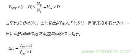 變壓器選擇很重要,因為它決定了原邊電感的電流紋波。