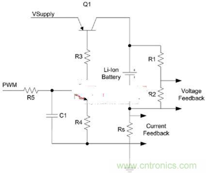 電流控制電路可采用電壓源和電流反饋技術進行構建。其工作原理類似于典型的負反饋控制系統。允許充電電流通過小電阻以獲得反饋,從而產生一定的電壓。