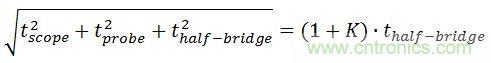 為確保儀器和探頭不會(huì)對(duì)測(cè)量造成重大影響,我們可以假設(shè),能夠用和方根法把探頭、示波器和半橋的上升時(shí)間加起來。盡管這種方法并不總是正確,但我們?cè)谧畛豕烙?jì)中可假設(shè)這一關(guān)系成立。