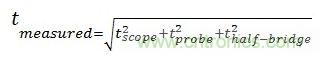 測(cè)得的半橋上升時(shí)間包括示波器的上升時(shí)間和探頭的上升時(shí)間,為: