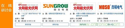 為了讓行業人士更好地了解太陽能光伏行業最新技術及產業潮流趨勢,除了品牌及產品展示外,本次在線展會還精心準備了四場語音研討會。觀眾將可以看到的是在12日上午10點,由OFweek行業研究中心資深行業分析師馮輝帶來的以《“十三五”規劃下的光伏“新征程”》為主題的第一場在線研討會。緊隨其后的是由陽光電源產品技術總監郭治帶來的《組串式逆變器的前世今生》。下午3點,博士生導師、南開大學電子信息與光學工程學院光電子研究所孫云教授將解讀中國CIGS薄膜太陽能電池技術趨勢及產業化進程。此外, 13號下午15點,由深圳茂碩電氣有限公司產品經理李林朗為我們解析如何提高光伏電站系統發電效率?