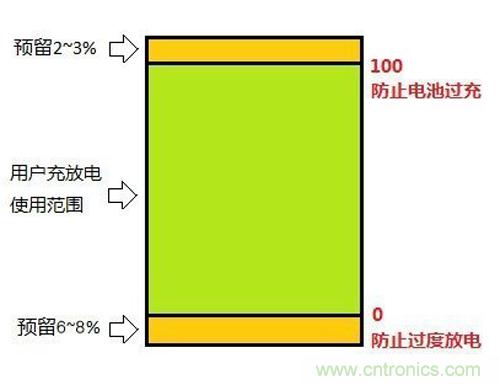 每塊電池在出廠時都會設定一個安全值。這是從電池安全的角度考慮,電池的初始電量中,生產廠家會保留一部分電量不被使用。之所以這樣做,完全是出于安全的考慮。電池不宜過度的充放電,如果電池被過度充電,極易誘發事故,最典型的例子就是新聞上常有的手機使用劣質充電器充電導致電池過充而引發的爆裂事故。同樣,如果電池過度的放電,超過電池放電的終止電壓值,還繼續放電時就可能會造成電池內壓升高,正、負極活性物質的可逆性遭到損壞,使電池的容量產生明顯減少。因此,電池設定的“安全冗余”同時也是為了保護電池的正常壽命。