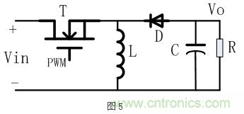 Buck-Boost電路拓?fù)洌袝r又稱為Inverting,其典型的電路結(jié)構(gòu)如下圖5所示: