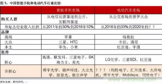 在野村證券的一份報告中,分析師黃樂平將中國電動汽車與智能手機產業進行了比較,ELEXCON君在他的分析基礎上進行了進一步研究,從中發現,今天的電動車市場與中國智能手機品牌崛起前的情況有諸多驚人的相似,體現在以下多個方面: