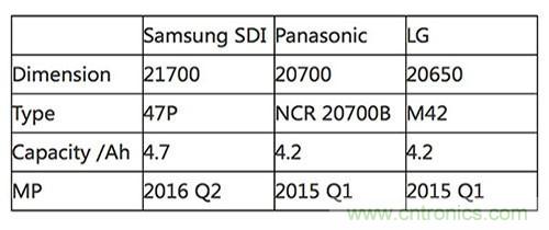 在此前后,Samsung公開開發21700,LG生產20650型號(見下表)。