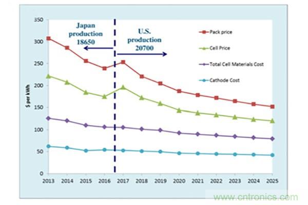 Panasonic、Samsung、LG的18650電池良率一般在98%以上(一次直通率),而國內的一般控制在90%左右,電池的成本降低是以量和良率的不斷提高為基礎的,下圖為Tesla電池成本的降低圖。這里面存在的潛在風險是:“Battery cost will go up slightly in 2017 due to high depreciation charges, but larger capacity per cell will neutralize the increase by 2018. However, if the factory is installed and utilization is below, say, 70%, there will be no cost advantage over evolutionary growth, even in 2020”。