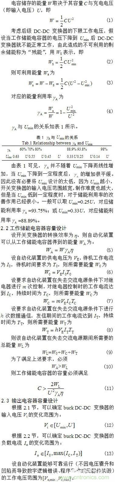 采用電容儲能的自動化終端備用電源能夠滿足在失去正常供電電源后自動化終端待機(jī)、操作和通信的需要。