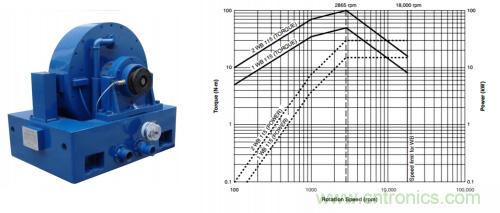 磁粉制動(dòng)器:可以輸出很大的扭矩,但一般只能運(yùn)行在低轉(zhuǎn)速(1000rpm)以下,只適用于大扭矩、低轉(zhuǎn)速的電機(jī)測(cè)試場(chǎng)合。可偏偏電動(dòng)汽車電機(jī),特別是乘用車電機(jī),動(dòng)輒上萬(wàn)rpm的轉(zhuǎn)速,讓磁粉制動(dòng)器直接出局。