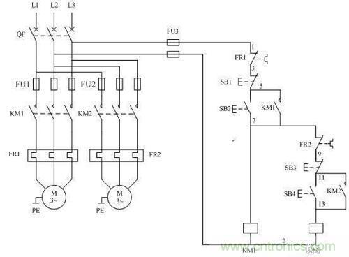 若需要其它電機在M2啟動后才能啟動,則把該電機的控制回路與M2的控制回路串聯。
