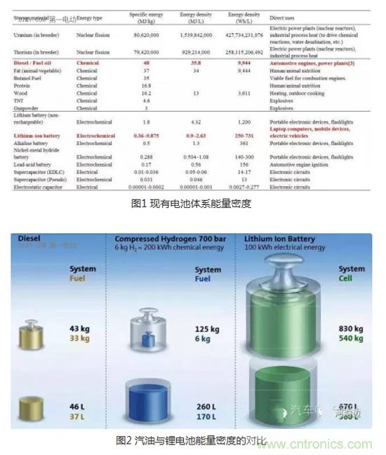 從下圖(圖1 汽油與鋰電池能量密度的對比)來看,鋰離子電池的能量密度和體積能量密度確實比較低。開安全環(huán)保的電動車的人就回過頭來指著搞電池的說,咋不像摩爾定律那樣,18個月就把電池能量密度翻個番,鋰電池不行,咱就換個其他的,誰行誰上。這還真不能那么急,咱來看看這些個能進行充放電的電池都啥水平?再打開地圖找一找,看看是不是有啥錯過的寶貝,看看是不是那么容易,鋰電池是不是能達到燃油車的能量密度水平。