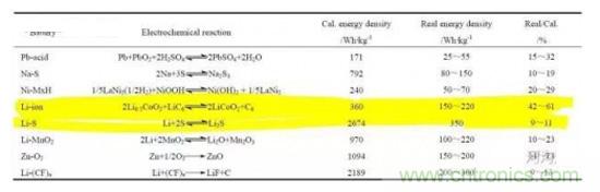 CRABTREE 2015年在The energy-storage frontier : Lithium-ion batteries and beyond中總結(jié)了過去25年松下18650電芯能量密度的變化。經(jīng)過千辛萬苦,現(xiàn)在電芯實際R占比(Real/Cal.)已經(jīng)達到了61%左右,實際電池系統(tǒng)加上管理系統(tǒng)、冷卻系統(tǒng)、引線等,成組實際能量密度會更進一步降低。下表例舉了一部分現(xiàn)有實際電池能量密度,可憐的明日之星鋰硫電池才10%左右的理論容量發(fā)揮;按照R max = 61%算,理論能量密度最高的鋰空的能量密度大概為3182 Wh/kg。