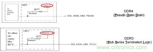 驅(qū)動DRAM工業(yè)發(fā)展的一個主要市場需求是對內(nèi)存器件的低功耗要求。介于這個原因,DDR4引入了一個新的IO驅(qū)動標(biāo)準(zhǔn),成為PSOD(Pseudo Open Drain)。在PSOD里,接收端將信號端接到軌電壓(VDD),而不是軌電壓的一半(VDD/2)。