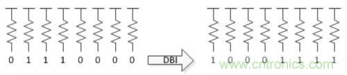 所以,一個降低DDR4系統(tǒng)功耗的方法是,盡量加大DDR4輸出高的數(shù)量。這個就是為什么DDR4中多了“DBI管腳”。舉個例子,當(dāng)8bit lane中有至少有5個DQ都是低時,所有的Bit將會被翻轉(zhuǎn),并且DBI(Data Bus Inversion)置低,用來指示數(shù)據(jù)線的反轉(zhuǎn)。通過這個方法,總共9個信號中(8個DQ和1個DBI),總有至少5個是被驅(qū)動為高電平。如果原始的數(shù)據(jù)中有4個或者更多的信號被驅(qū)動為高時,那么DBI信號也將會設(shè)為高,同樣,還是9個里面至少有5個為高。這樣的話,在每一個數(shù)據(jù)傳輸?shù)倪^程中,都是至少有5/9的數(shù)據(jù)是高電平,可以在一定程度上降低了功耗。