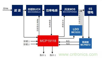 控制芯片MCP19118為具有同步驅動器的數字增強型功率模擬控制器,集成了模擬PWM控制器和8位MCU,既有模擬器件的快速動態響應,也可以靈活的實現充電曲線及各種功能。第5代OptiMOS的Rdson更小,寄生電容更小,寄生二極管的Trr也更小,更適用于高頻PWM的功率轉換電路,對整體性能的提升有較大的幫助。