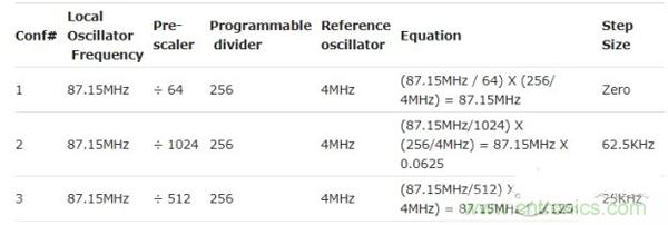 步長 =(本地振蕩器頻率/預分頻器)X(可編程分頻器/參考振蕩器)