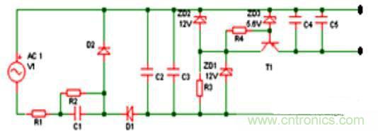 ③電容降壓電路是一個電流源,只需改變基準電壓元件,就可得到很寬范圍內的任一DC電壓源。