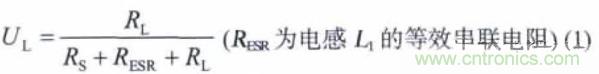 式(1)表明加入電感L 將使UL 變小,影響電源的負載調整率。若要使輸出電壓穩定,應選用等效串聯電阻小的電感器件,電感器的等效串聯電阻由其繞制導線的直流電阻決定。