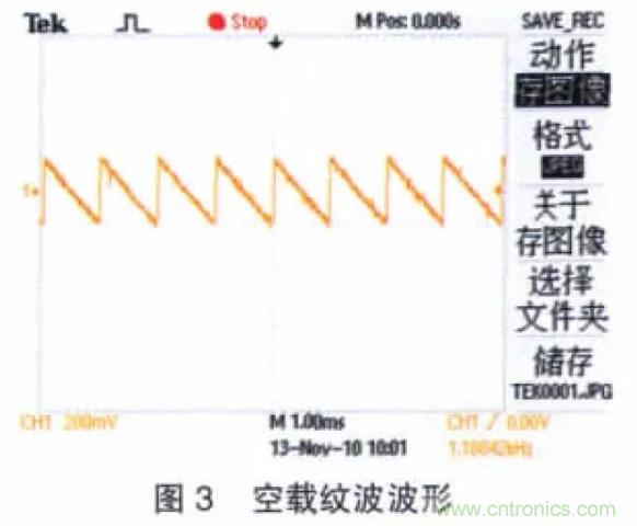 2.2.1 無濾波電路時電源輸出紋波波形