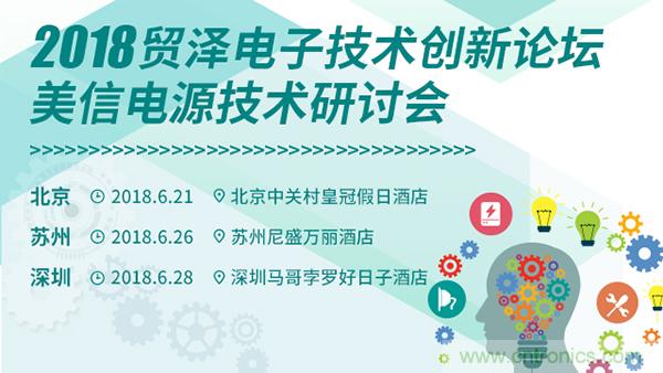 【導讀】貿澤電子(Mouser Electronics) 宣布攜手美信半導體,于6月21日北京中關村皇冠假日酒店、6月26日蘇州尼盛萬麗酒店、6月28日深圳馬哥孛羅好日子酒店,舉辦“2018貿澤電子技術創新論壇-美信電源技術研討會”。