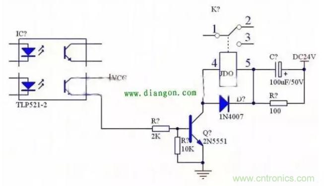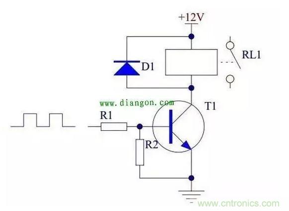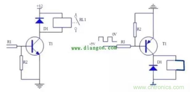 當晶體管用來驅動繼電器時,必須將晶體管的發射極接地。具體電路如下: