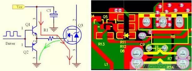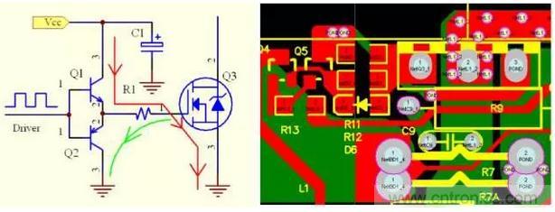 驅動源的地線要盡量靠近被驅動器件,以便 構成最小環路,減少振蕩與EMI問題