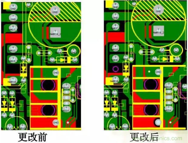 ●Y電容的連接點,講究一個“靜”,很顯然上圖Y電容最佳連接點事C1的負端,以及變壓器T1的次級7腳。