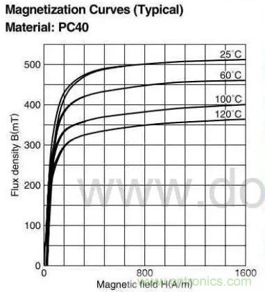 從前述設計要求中可知,共模電感器要不易飽和,如此就需要選擇低B-H(磁芯損耗與飽和磁通密度)溫度特性的材料,因需要較高的電感量,磁芯的μi值也就要高,同時還必須有較低的磁芯損耗和較高的BS(飽和磁通密度)值,符合上述要求之磁芯材質,目前以鐵氧體材質最為合適,磁芯大小在設計時并沒有一定的規定,原則上只要符合所需要的電感量,且在允許的低頻損耗范圍內,所設計的產品體積最小化。