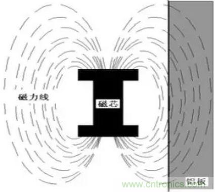 當在一個工字電感旁邊放置鋁板時。如圖2所示,由于鋁板屬于逆磁性材料,其磁阻很大。相當加鋁板時,原先的磁通面積減小。