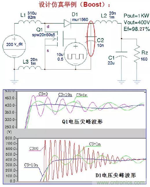 引起電壓尖峰的電流可能是:拓?fù)潆娏鳌⒍O管反向恢復(fù)電流、不恰當(dāng)?shù)闹C振電流等。