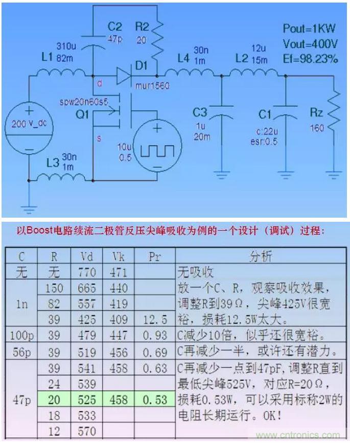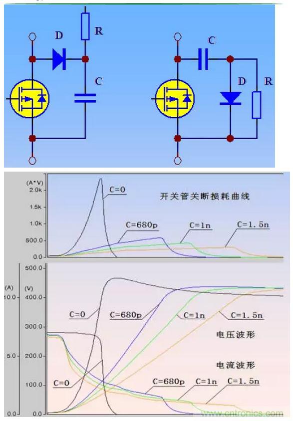 C 的大小決定吸收效果(電壓尖峰),同時(shí)決定了吸收功率(即R的熱功率)。