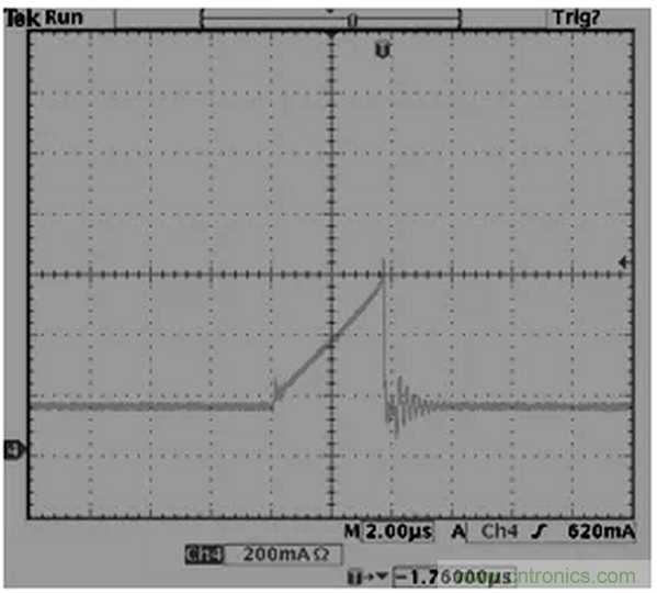 32.反激拓補結構,變壓器B值需小于3500高斯,如果變壓器飽和一切動作將會失控,如下,上圖為正常,下圖為飽和。