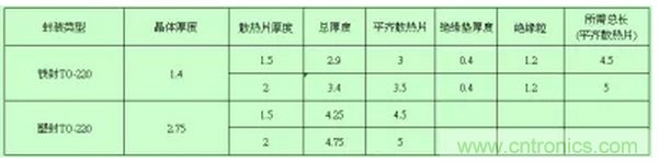 33.結構設計,散熱片使用螺絲固定參考以下表格設計,實際應用中應增加0.5-1mm余量,參考如下表格: