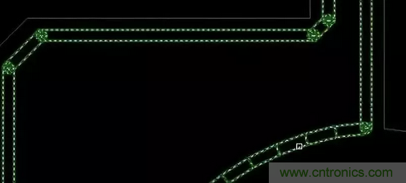 16.畫小板時,在小板引腳的90度拐角處增加一個圓形鉆孔。