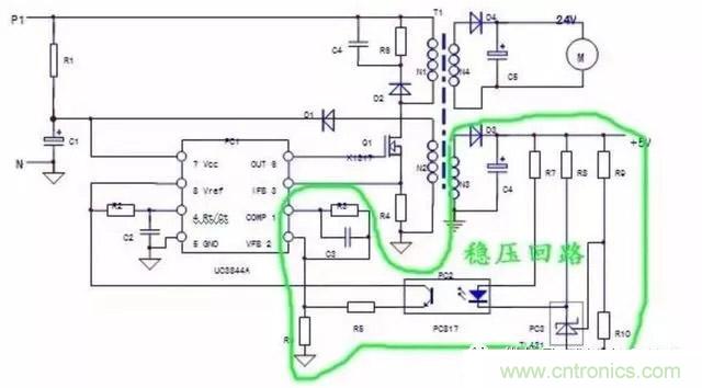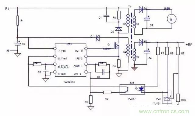c.代換PC2,PC3無效,故障可能為開關管低效,或者UC3844內部輸出電路低效,代換優質開關管或者UC3844芯片。