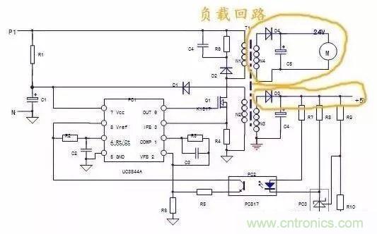 4)負載回路:N3,N4二次繞組及后續電路,均為負載回路,負載回路的異常,會牽涉到保護回路和穩壓回路,使兩個回路做出相應的保護和調整動作。