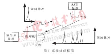 傳感器天線接收由遠處詢問機發送來的詢問電磁脈沖信號,通過叉指換能器轉化為聲表面波,遇到反射條后形成回波,回波通過叉指換能器重新轉化為電磁波并再次通過天線發射出去。這些回波信號形成了由晶體表面的反射條的數目和位置決定的脈沖序列,它類似于條形碼圖案,每個脈沖的時間延遲取決于SAW傳播速度。信號后處理單元對脈沖延遲變化進行估計,實時解調出識別碼。