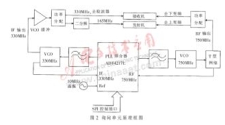 圖2為詢問單元方框圖。它由發射機、接收機、本地振蕩模塊等部分組成。
