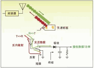 圖1:無源標(biāo)簽對(duì)射頻 RF能量進(jìn)行整流并調(diào)制信號(hào),然后反向散射反射給閱讀器。
